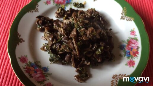 Первый раз готовлю дисцину щитовидную. Грибы жаренные с зеленью.