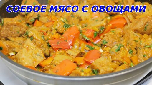 Соевое мясо в томатном соусе с овощами. Вегетарианский рецепт вкусного блюда с соей.