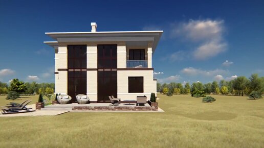 Проект двухэтажного дома вдохновленного стилистикой Райта площадью 280 м².