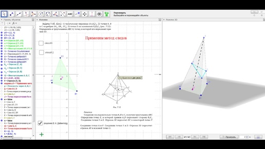 Найдите точку пересечения отрезка SD, соединяющий вершину пирамиды с точкой основания, с плоскостью сечения пирамиды