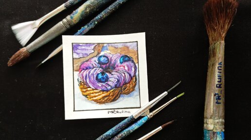 Рисую заварное колечко с черникой (Миниатюра)