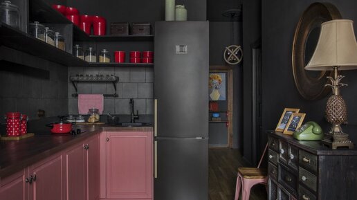 Обалденная черная угловая кухня. По-настоящему живая и уютная, уходить из нее не захочется