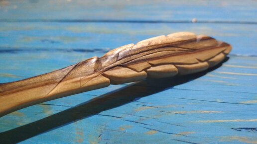 Простое перо на деревянной ложке из лавра