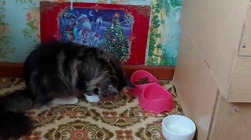 Знала, что кошки пьют с лапы. Но что бы кушали...