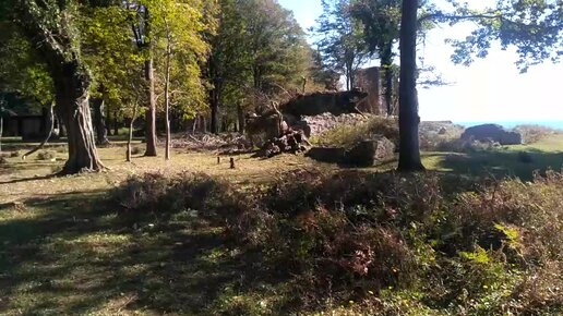 Показываю, как выглядят развалины храма Айлага -Абык Х века, расположенного на самом берегу Черного моря (г. Гудаута, Абхазия).