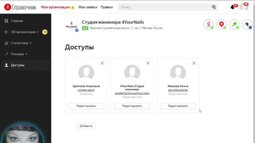 Как делегировать права другому пользователю в Яндекс Справочнике