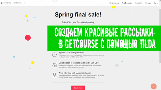 Создаем красивые рассылки в Getcourse с помощью Tilda