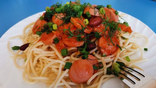 Сосиски и фасоль, простое сочетание для холостяцкого ужина за 5 минут