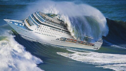 Круизный лайнер в шторм. Съемки с борта корабля