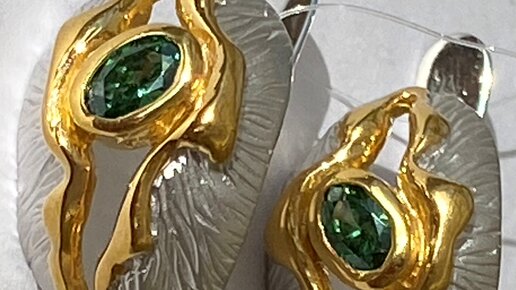 Фианиты Сваровски цвета Изумруд. Авторские украшения с позолотой