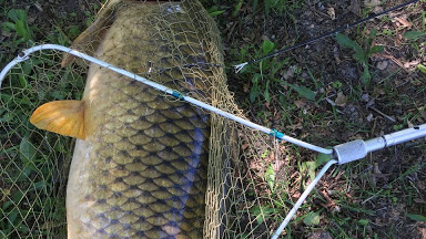 Друг в Башкирии на озере случайно зацепил на спининг зеркального карпа,за верхний плавник!