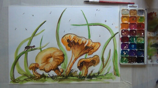 Детская изостудия - рисуем грибы-лисички. Начинающему юному художнику.