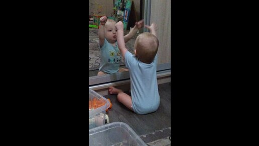 Тимоша и зеркало,нашел себе развлечение