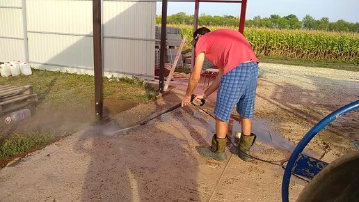 Ещё одно применение бытовой мини-мойки. Чищу стоянку перед выравниванием.