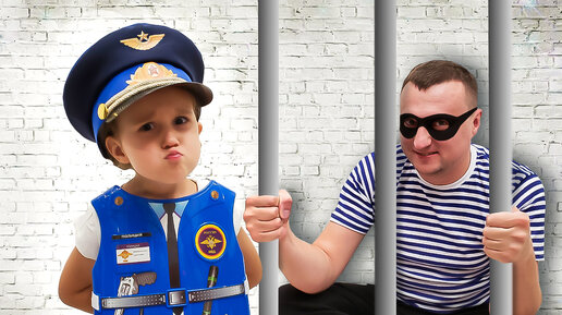Папа и Милана играет в профессию полицейского и нарушителей