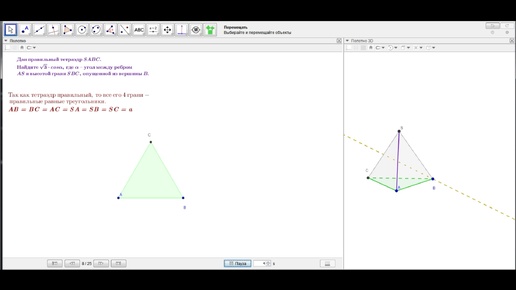 Дан правильный тетраэдр. Найти sqrt(3)*cos(alfa), где alfa-угол между ребром и высотой грани, опущенной из вершины основания ...