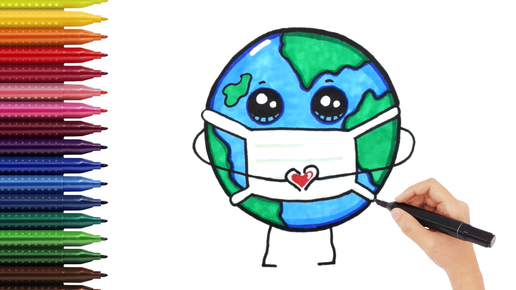 Как нарисовать ЗЕМЛЮ в медицинской маске / КАВАЙНЫЕ РИСУНКИ / Мультик раскраска ❤