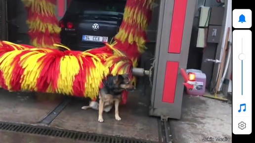 Смышленная собака использует автомойку в своих целях.