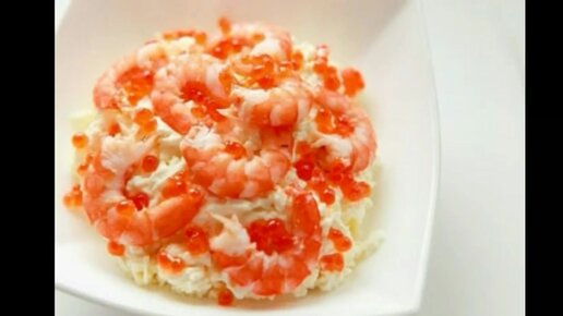 Слоеный салат с креветками и икрой