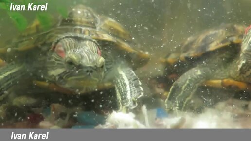 Черепашки монстры съедают окуня.Кормим черепах кусками окуня.