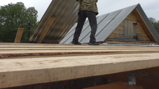 Строим сарай! Поднимаем 5 метровый профнастил. Юрик помогает в работе!
