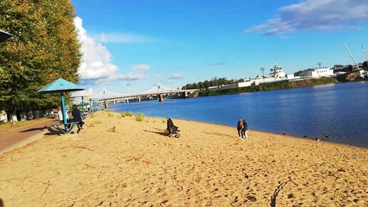 Городской пляж в Твери. Гуляем с мужем и ребёнком. Показываю, как у нас здесь