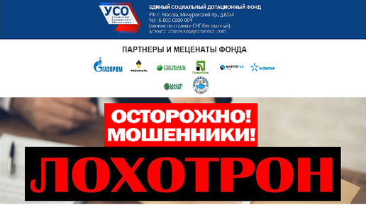 Управление Социального Обеспечения УСО (Единый Социальный Дотационный Фонд)! Лохотрон! Честный отзыв