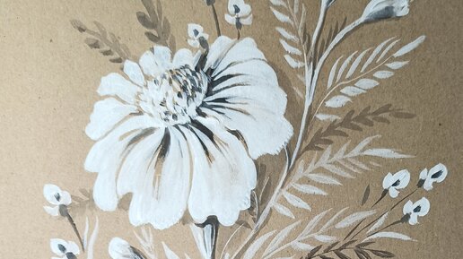 Как нарисовать гуашью монохромный цветок на крафтовой бумаге.
