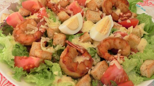 Очень легкий и вкусный салат Цезарь с креветками без заморочек.