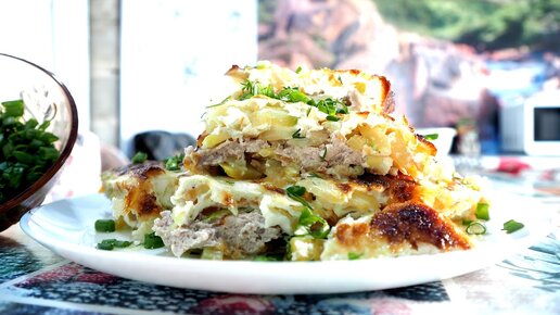 Я приготовила домашнюю запеканку с фаршем для любимой мной моей семьи