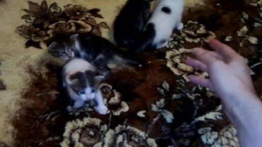 Четыре маленьких котёнка на диване