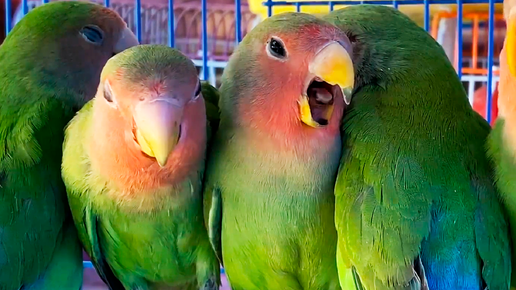 Веселые неразлучники своим громким пением не дают уснуть товарищу