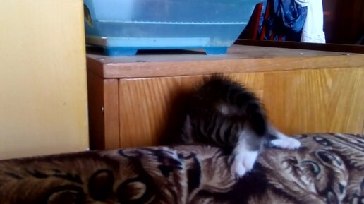 Котёнок Гриша учится ходить и лазать. Провалился!