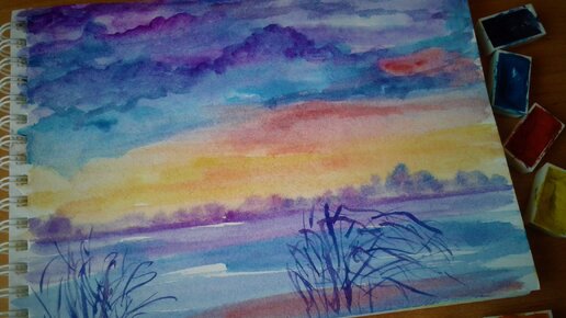 Рисуем акварелью с детьми | Пейзаж пошагово