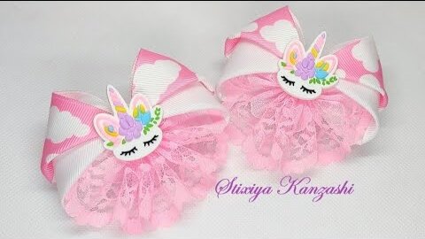 DIY / Бантики для малышек с Единорогами / Бантики из Лент и Кружева / Для начинающих