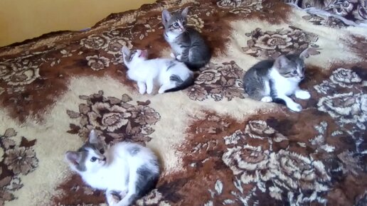 Четыре котёнка одновременно кивают головами
