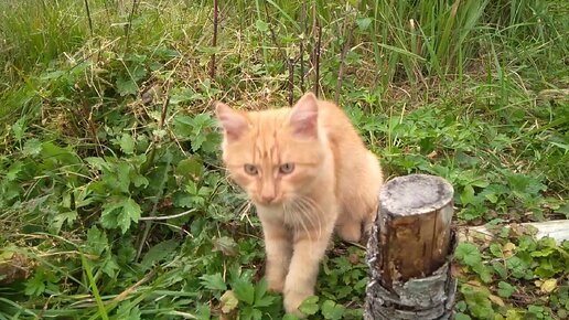 В траве сидел котёнок.
