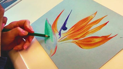 Рисую огненный цветок с помощью цветных карандашов - показываю процесс работы.