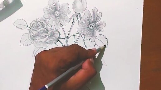 С помощью простого карандаша рисую вазу с цветами - показываю процесс рисования.