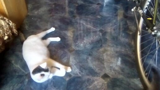 Котенок играет с кошкой на полу