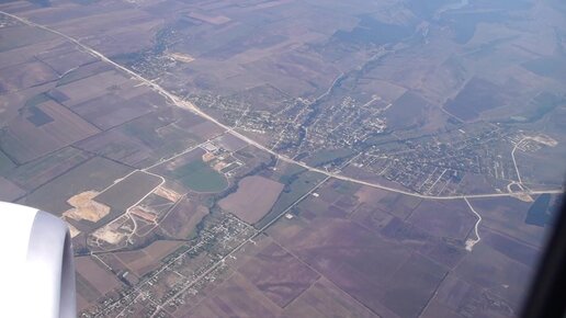 Крымские горы и степи из иллюминатора самолёта перед посадкой в Симферополе