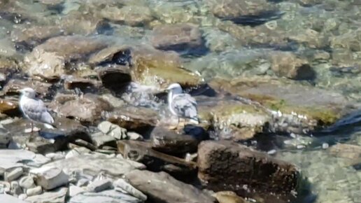 Нашла много чаек в Кабардинке. Сняла как они отдыхают на море и чистят перышки