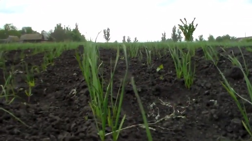 Всходы чеснока сорт Любаша 6 мая, прошло меньше двух месяцев от посадки.