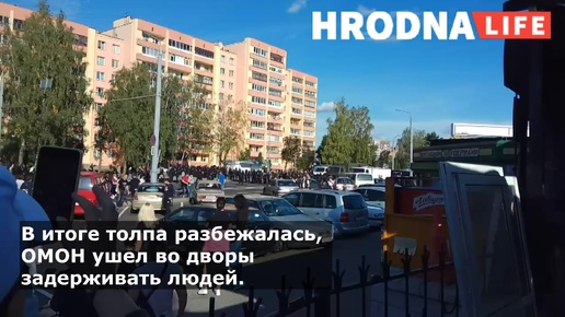 Стычка протестующих с ОМОНом в Гродно у универсама "Брест"