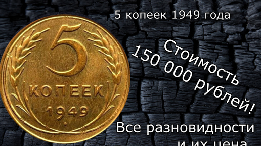 Редкие монеты: 5 копеек 1949 года - Все Разновидности и их цена!