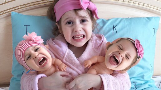 Eva found a doll and pretends to be a parent
