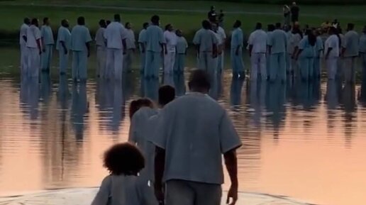 Канье Уэст с детьми прошлись по воде во время очередной воскресной службы