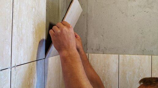 Когда плиточник в процессе укладки плитки