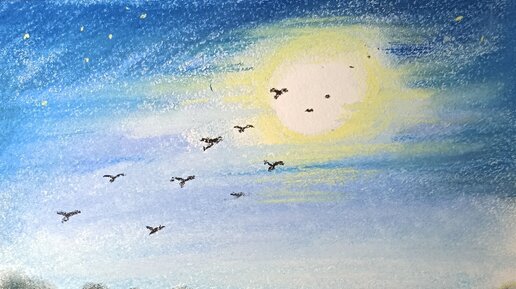 Полнолуние рисуем сухой пастелью. Мастер-класс по скетчингу для начинающих.