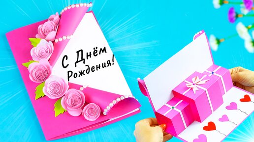 Открытка на День Рождения с Цветами своими руками! Как сделать подарок Маме из бумаги